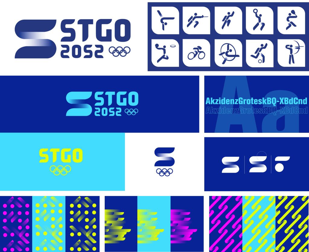 Se diseñó la propuesta gráfica para los Juegos Olímpicos Santiago 2052 con el concepto "Cielos en Movimiento", inspirada en el Constructivismo Ruso. La identidad visual fusiona el cielo chileno con el dinamismo urbano, resaltando el compromiso ecológico y tecnológico.